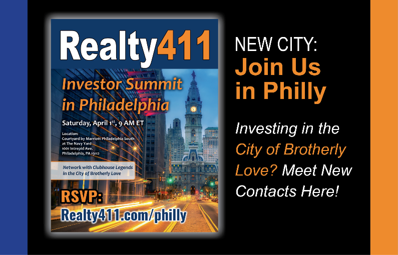 Realty411was created in 2007 to serve active real estate investors. Be sure to join our networking site and connect with our VIP readers.